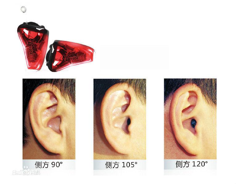侧后方105度:几乎看不到助听器;