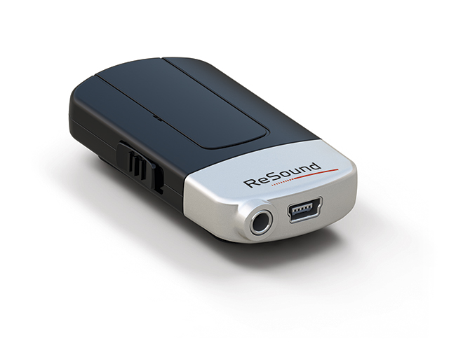 小巧而便携的迷你音频转换器可将说话人的声音直接无线传输到智高助听器中。